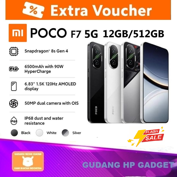 XIAOMI POCO F7 5G 12/512GB GARANSI RESMI Snapdragon 8s Gen 4 50MP camera OIS 6.83" 1.5K 120Hz AMOLED 6.500 mAh