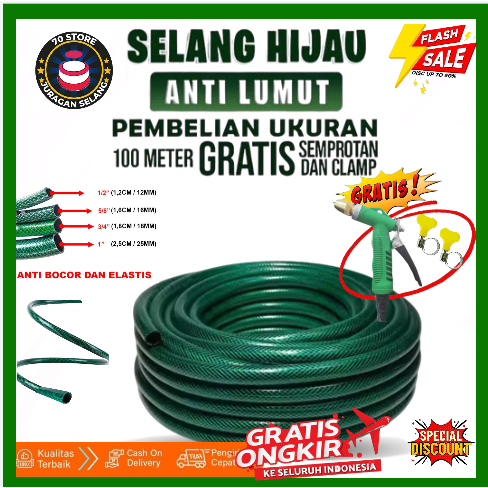 SELANG AIR BENANG HIJAU 1/2 5/8 3/4 INCH 100 METER SELANG AIR TAMAN ANTI LUMUT PERALATAN PERKEBUNAN MURAH