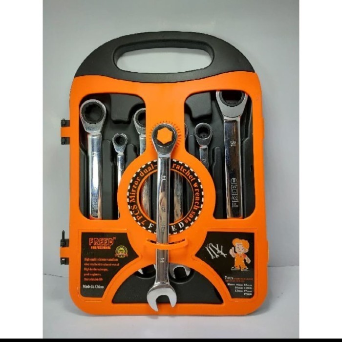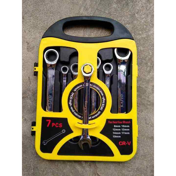 Rachet Ring Pas Set 7pcs Kunci Ring Pas 8,10,12,13,14,17,19 Wrench Ring Pass Ratchet set 7
