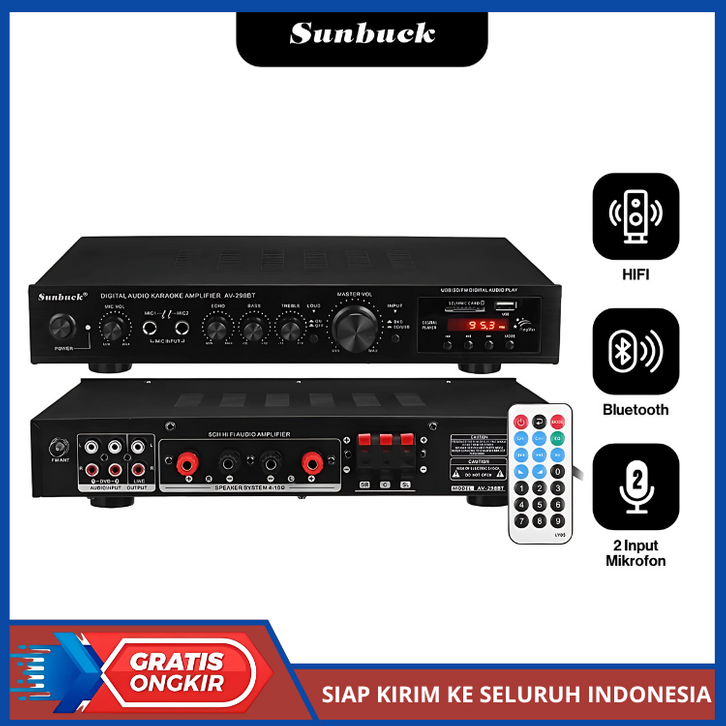 SUNBUCK AUDIO BLUETOOTH 4.1 DAC AMPLIFIER 5 CH REMOTE 2000W - AV-298BT ORIGINAL OFFICIAL STORE
