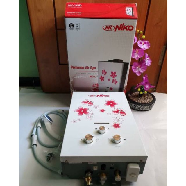 WATER HEATER PEMANAS KAMAR MANDI GAS NIKO 6 LN/LN2 PEMANAS AIR KAMAR MANDI PLUS SHOWER KOMPLIT PEMANAS AIR GAS KAPASITAS 6 LITER AIR WATER HEATER