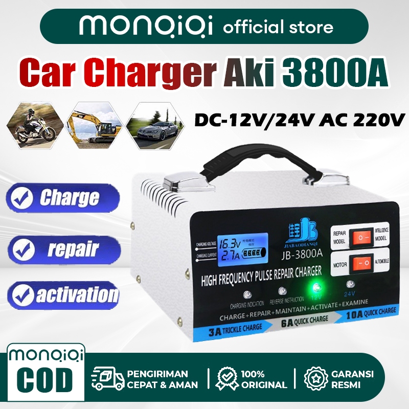 Monqiqi 3800A Car Charger Aki Otomatis Car Battery Charger Pengisi Daya Aki Mobil 3800A 12 / 24V Tugas Berat Pengisian C