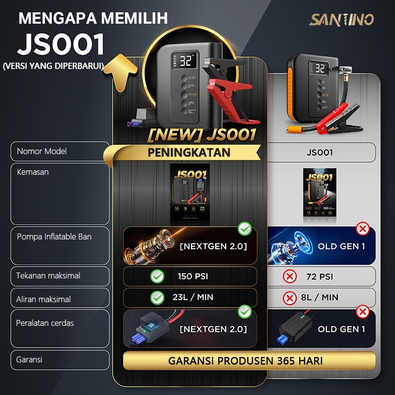 SANTINO JS001 PRO 12000 mAh Jump Starter Aki Mobil Motor Power Jumper Aki Alat Jamper Aki Power Mobil Jemper Aki Porta