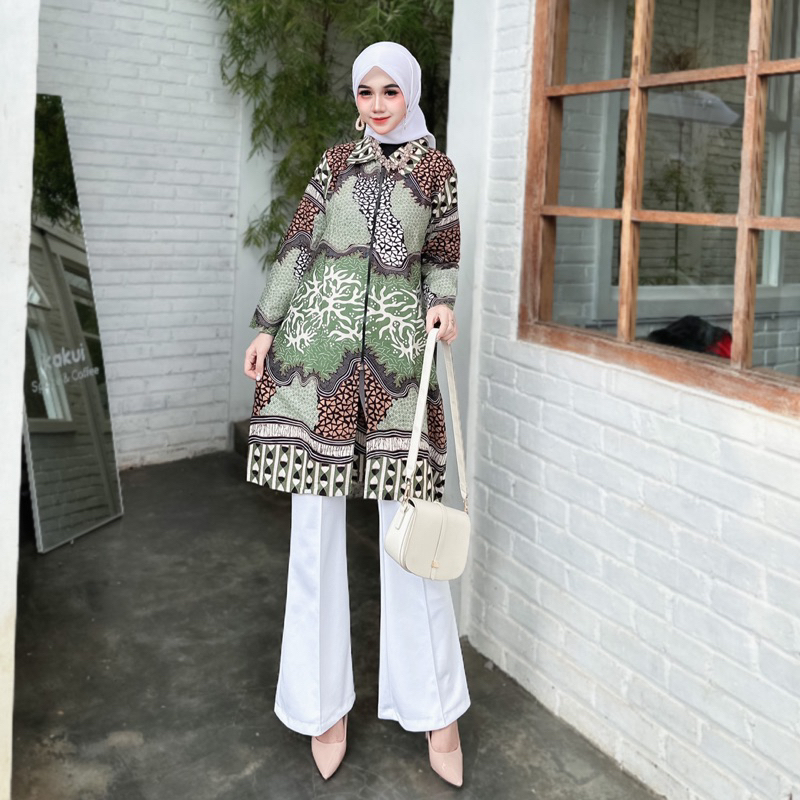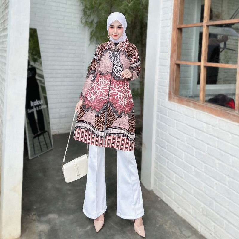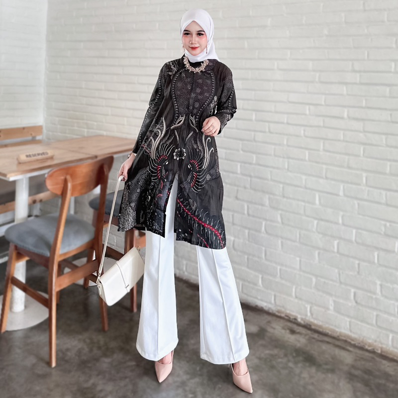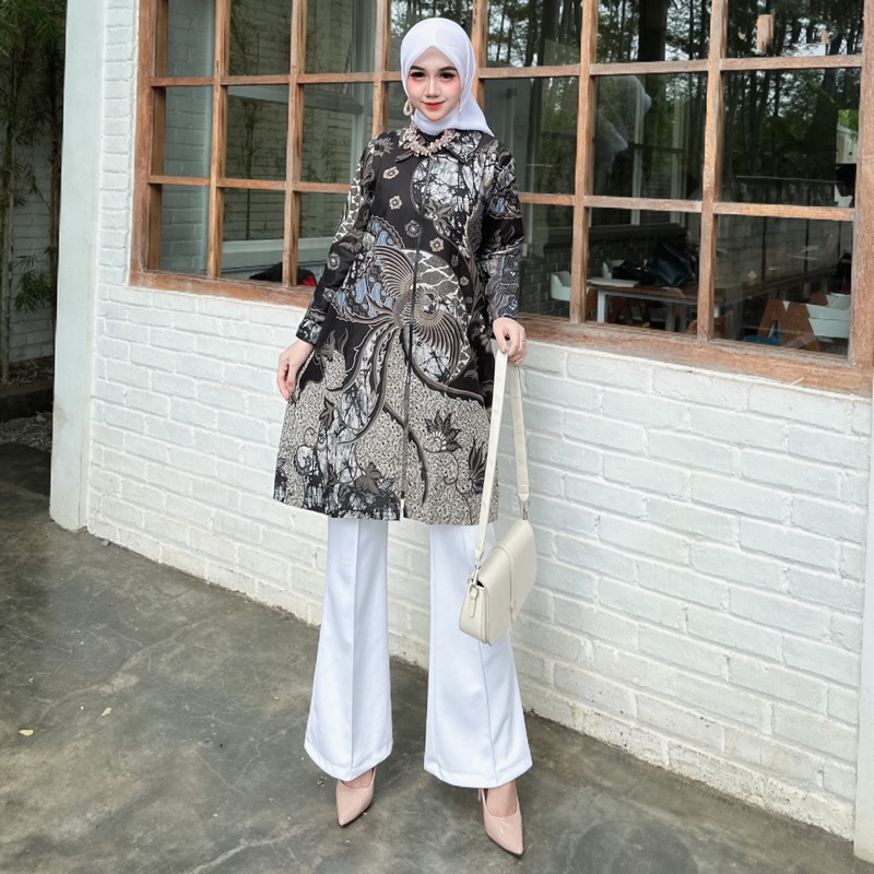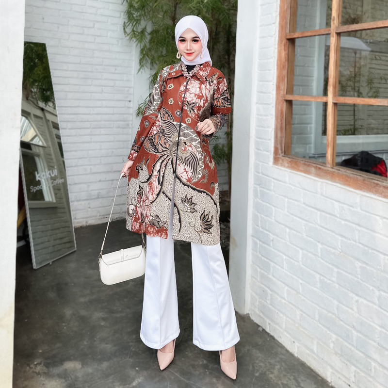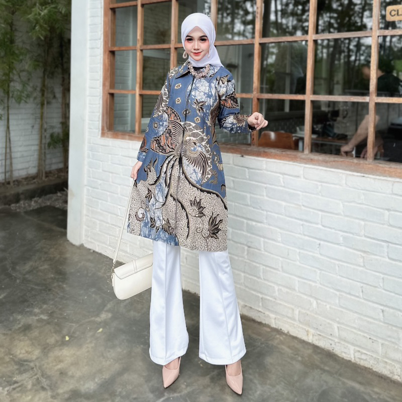 Tunik Batik Modern Serut Genes Jelita Tunic Navbor Yelbor Whitbor Creambor Batik Kekinian