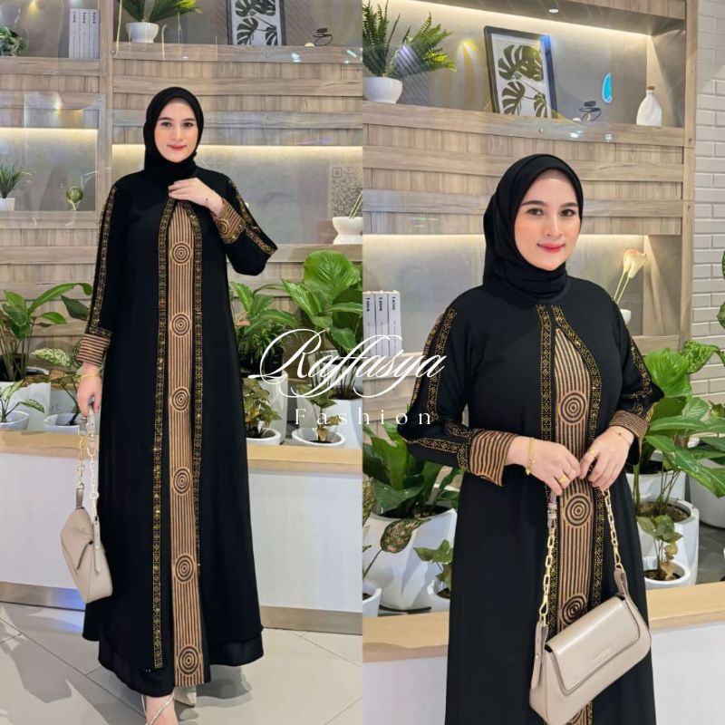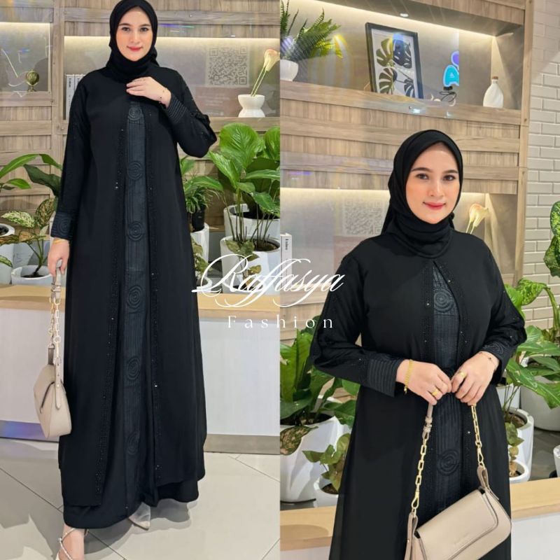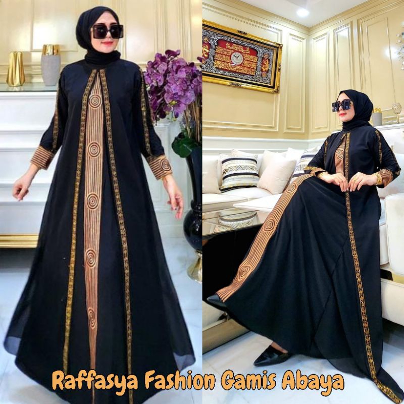 GAMIS ABAYA TURKEY BORDIRAN CIRCLE SIMPEL HITAM WARNA