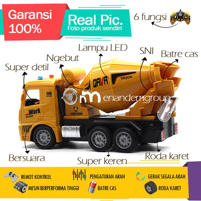 Mainan Mobil Remot Kontrol RC Truk Molen Semen 6 Fungsi Batre Cas