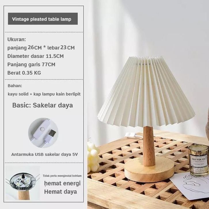 VOOLA Lampu Meja Aesthetic Lampu Meja Minimalis Lampu Tidur Meja Korean Retro vintage Lampu Dekoratif USB Dapat Diatur
