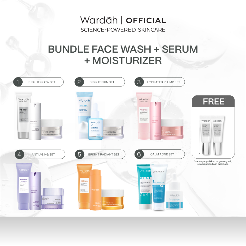 [WARDAH SKINVERSE] WARDAH Paket 3 pcs Gel Moisturizer, Face Wash, dan Serum - Bright Radiant, Bright Glowing, Calm Acne