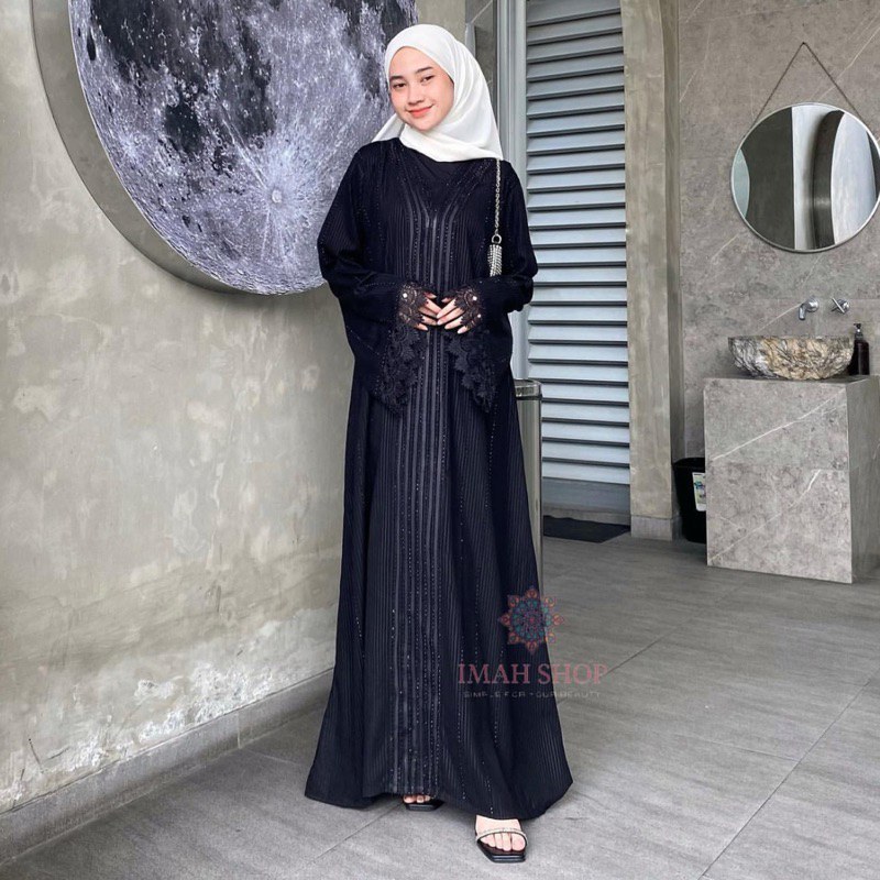 Abaya Hitam Turkey Gamis Syari Muslimah Bahan Jetblack Hitam Kombinasi Renda Imah Shop Dress Arab Saudi 951