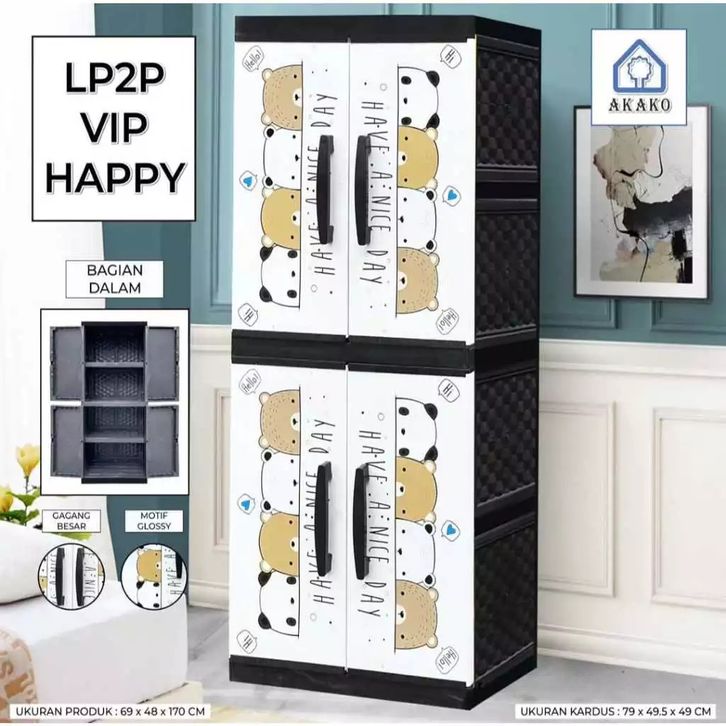 LEMARI PAKAIAN PLASTIK LEMARI JUMBO (VIP) MOTIF PANDA / LEMARI BAJU PLASTIK / KODE : LP2P - VIP ( HAPPY )