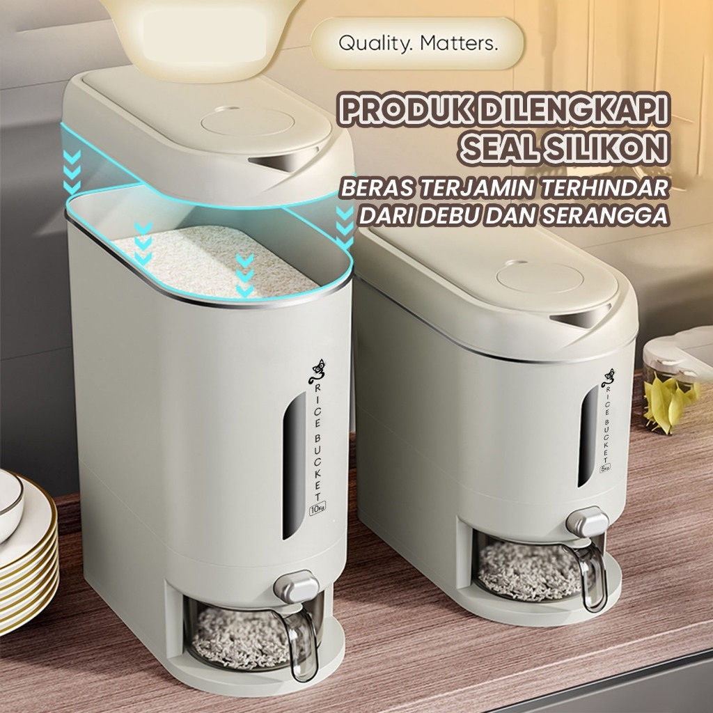 [Mall] ANGOLA Tempat Beras Otomatis 10KG E29-E31 Dispenser Beras Food Grade Anti Kutu Pencet Otomatis