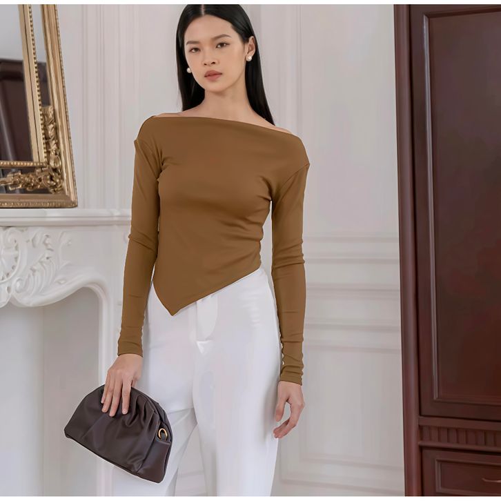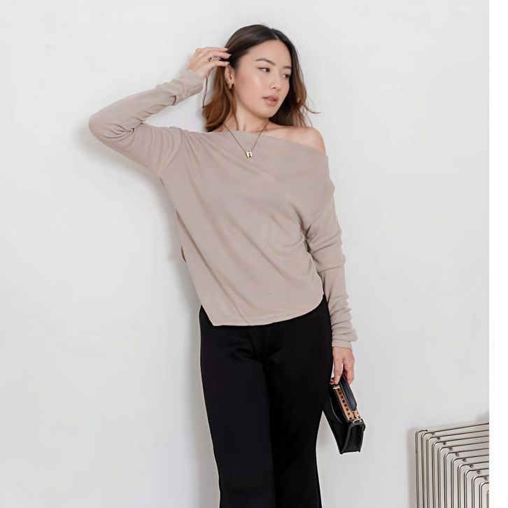 [Star] ATASAN WANITA REMAJA KEKINIAN TERBARU OUTFIT/ATASAN WANITA BLOSSOM SABRINA LONGSLEEVE - ATASAN LENGAN PANJANG RIB