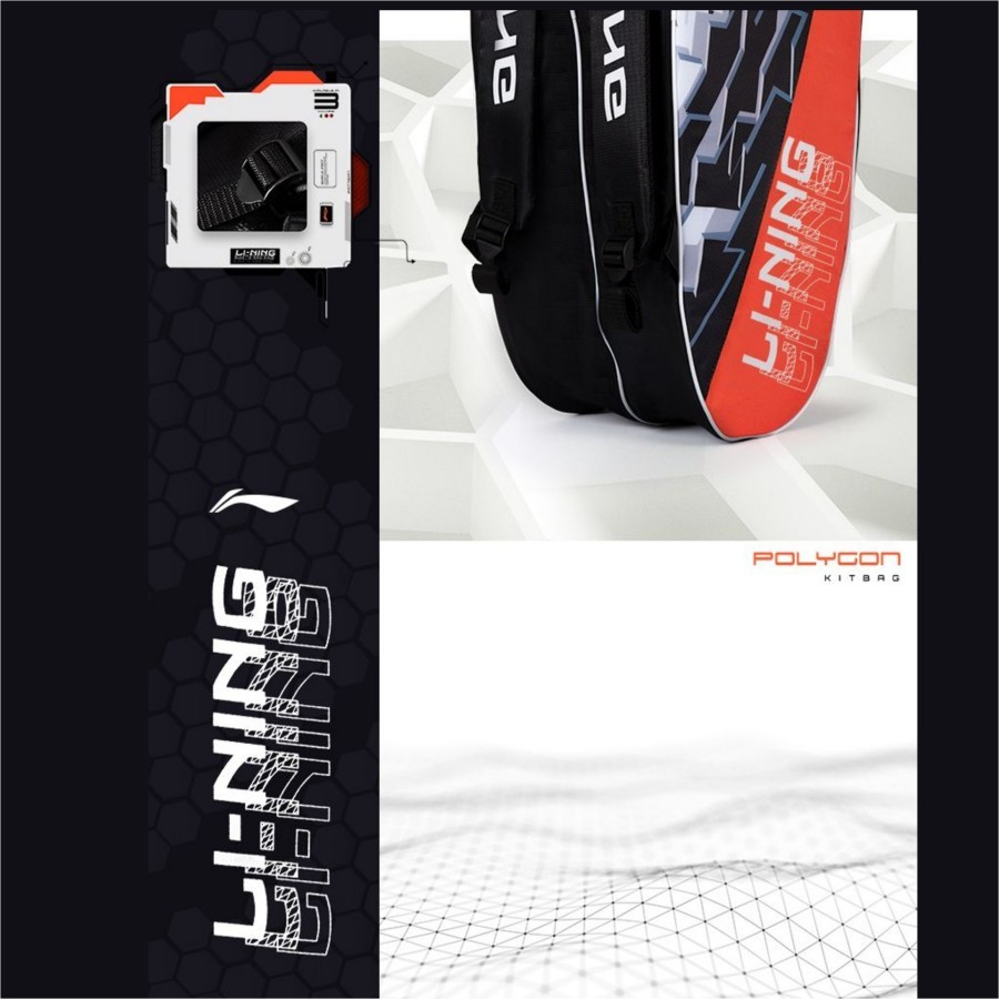 TAS RAKET BADMINTON LINING 2 COMPARTMENTS POLYGON KIT ABDS841 BLACK ORIGINAL TERMURAH
