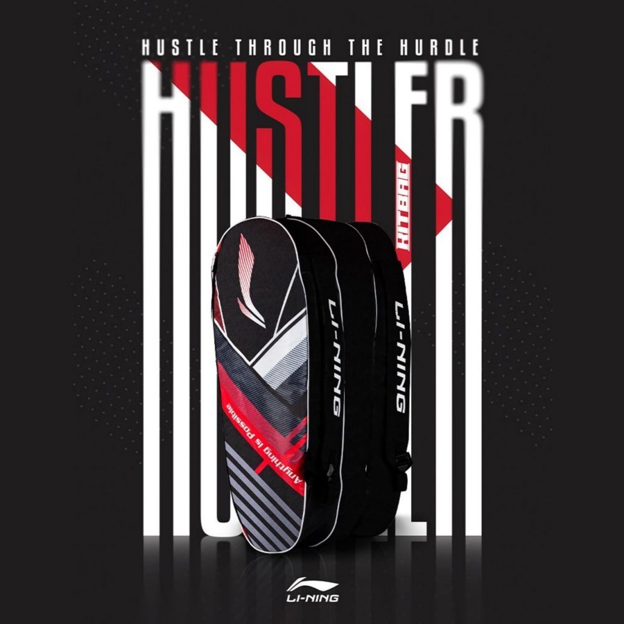 HOT PROMO TAS BADMINTON LINING HUSTLER 3 COMPARTMENT ABDS837 BLACK ORIGINAL TERMURAH