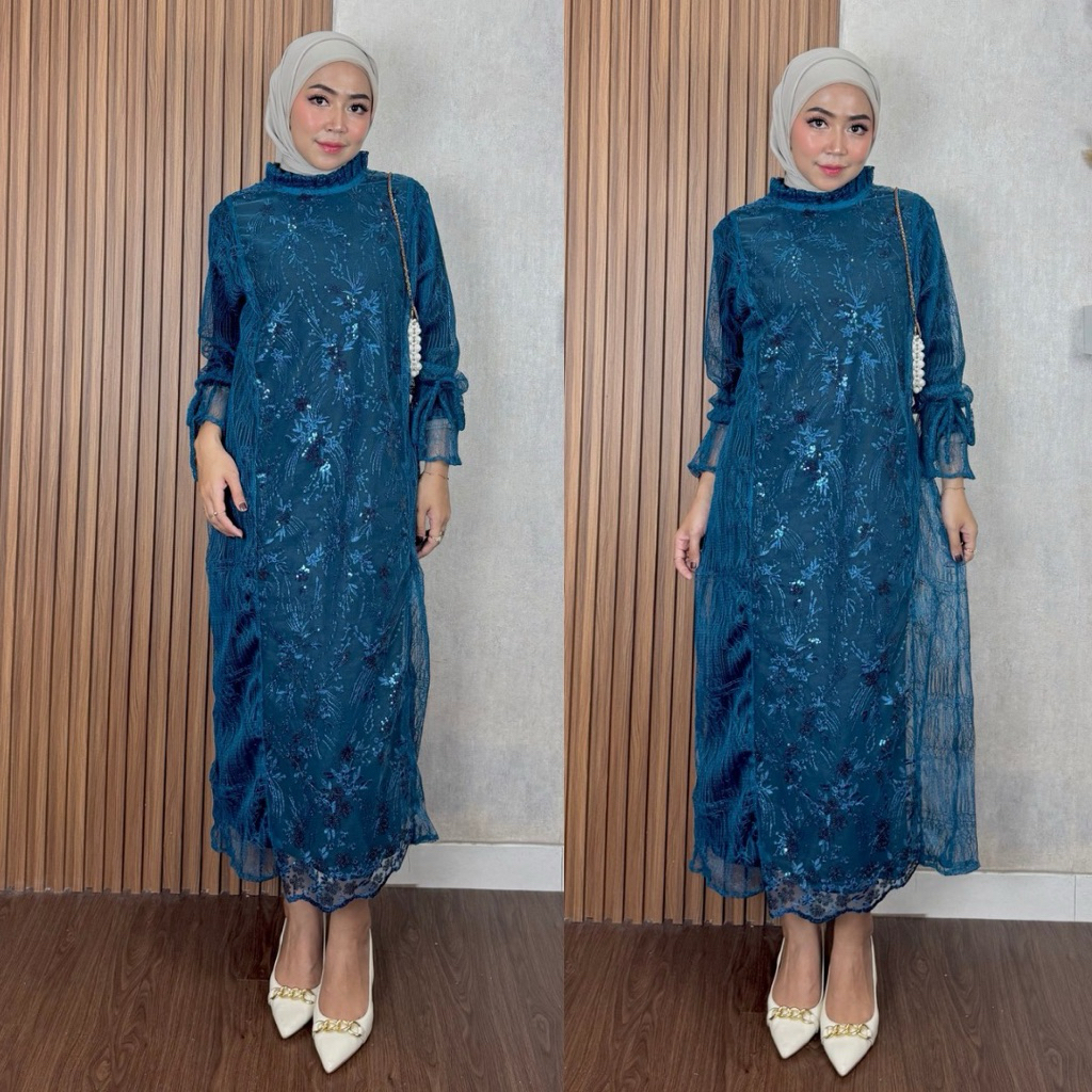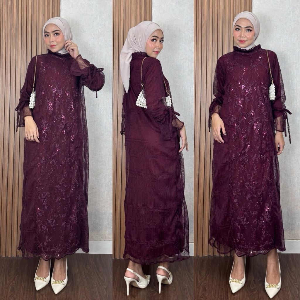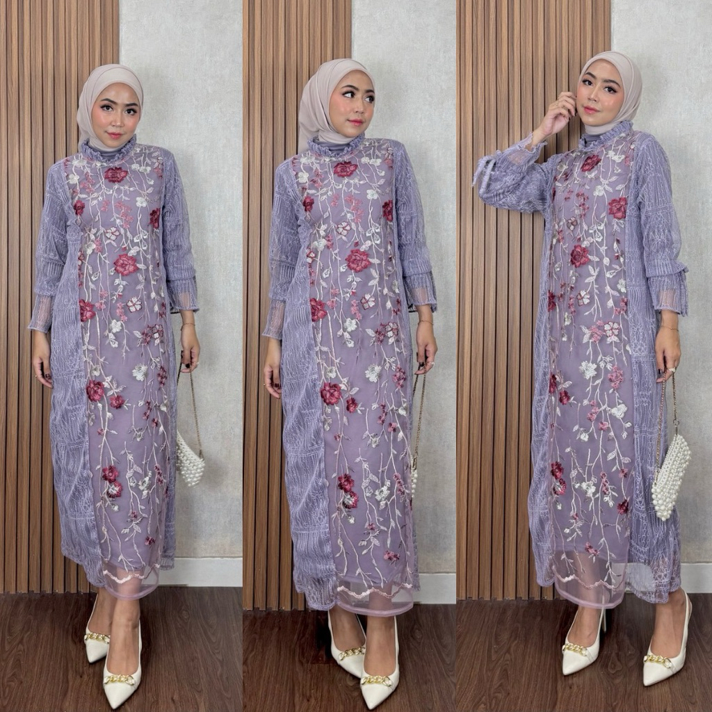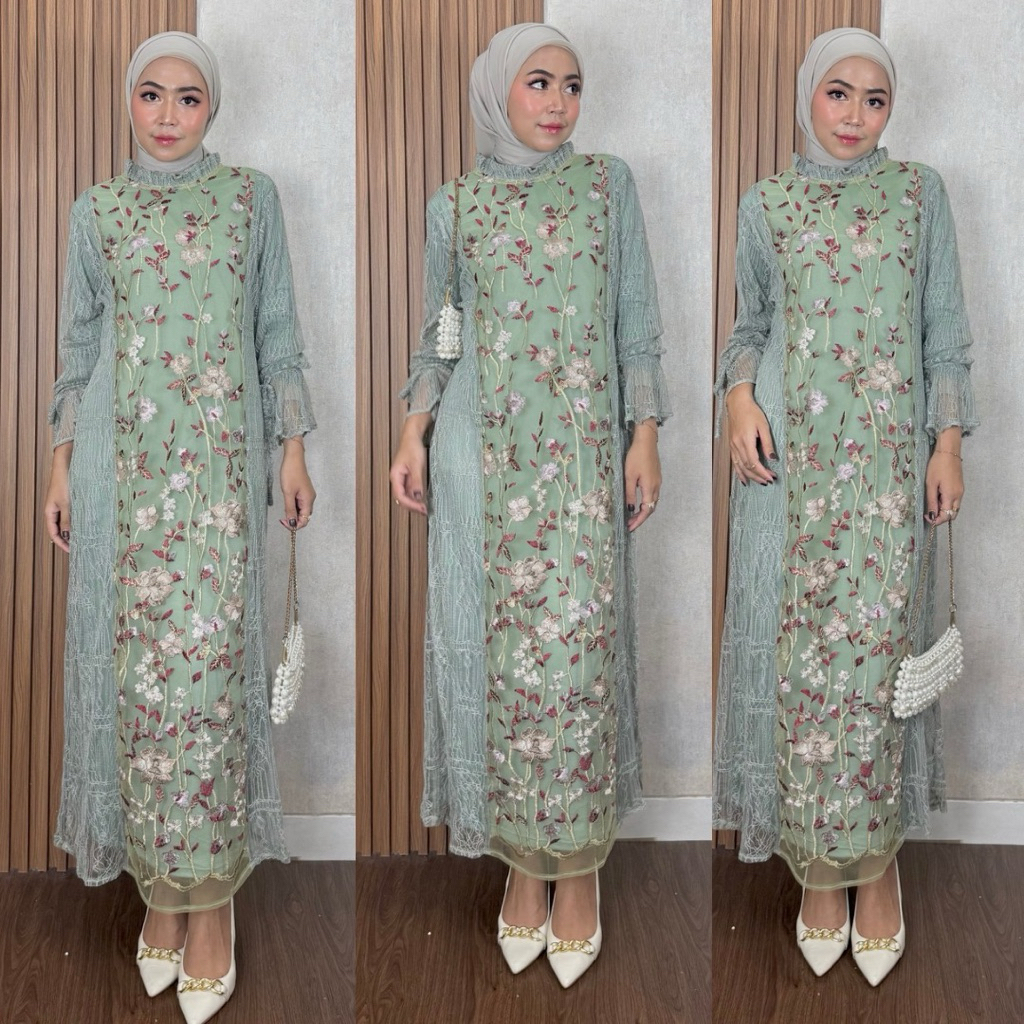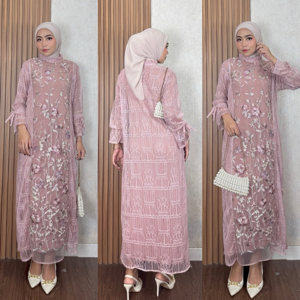 Mina Dress One set Outer Brukat Plus Inner Baju Kondangan Outfit Pesta Lamaran Wisuda Wanita Muslimah Setelan Mewah