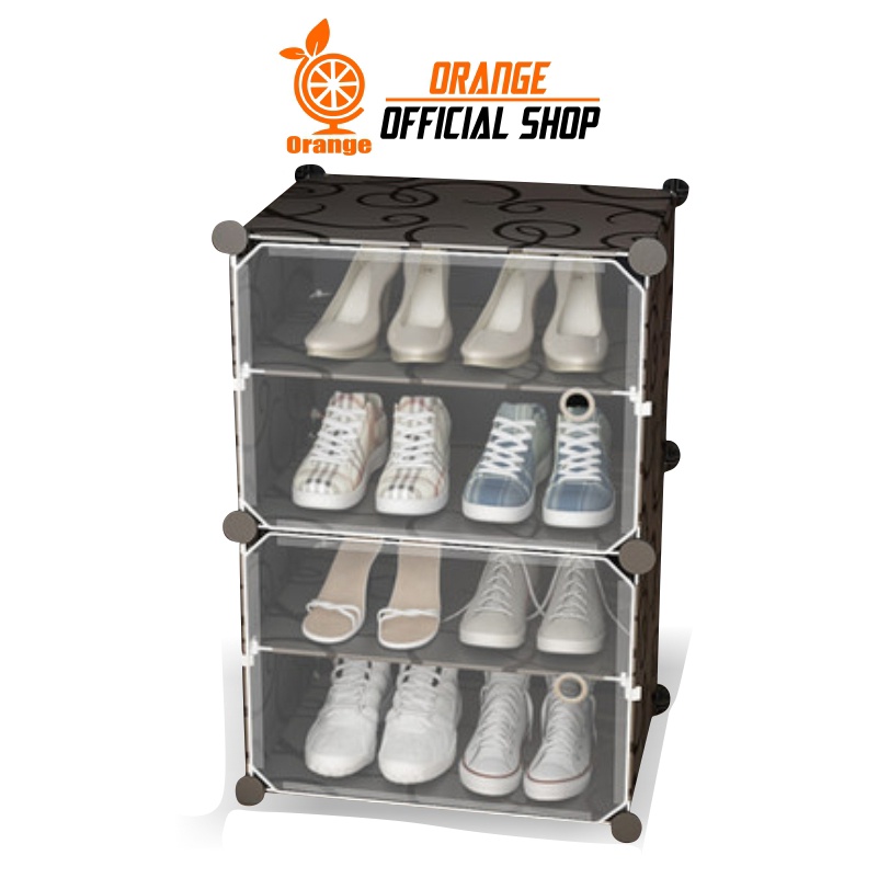 PROMO Orange Official Shop Rak Sepatu Portable 2 Kolom 4 Kotak Sendal Tebal Tertutup Anti Debu Lemari Sepatu Minimalis 4