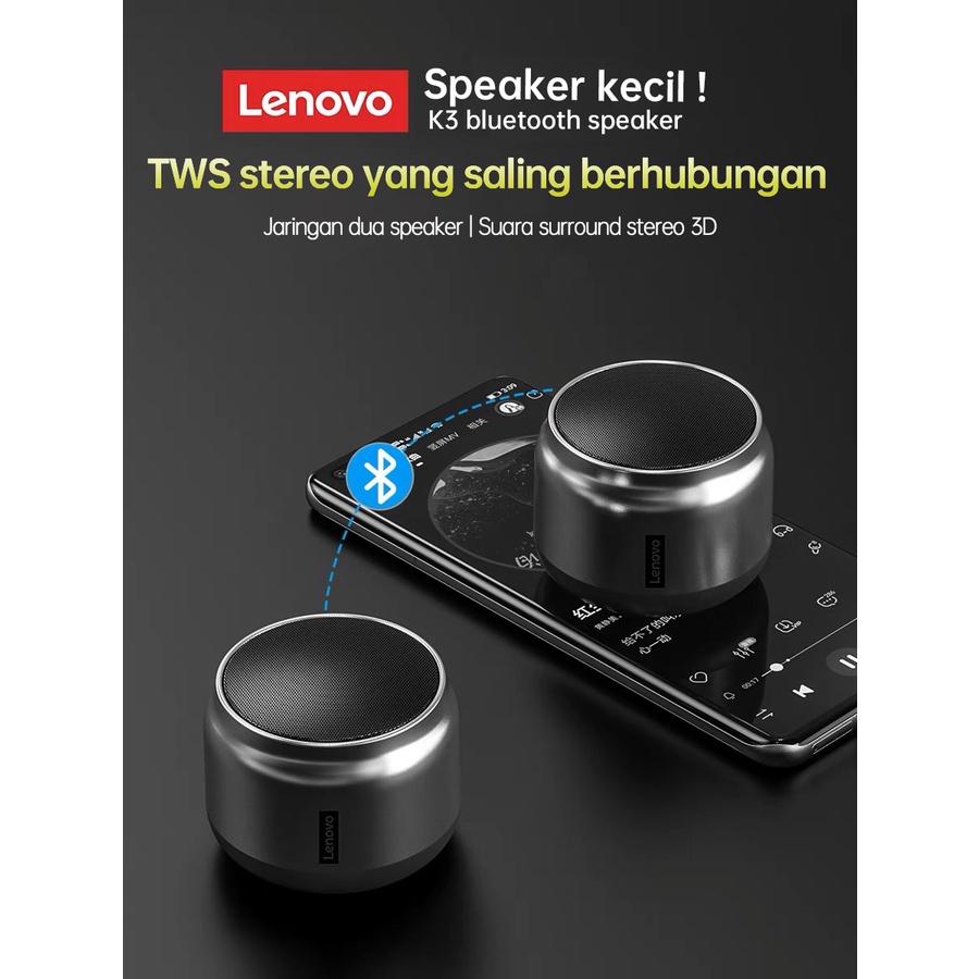 Lenovo K3 Speaker Portabel Nirkabel Bluetooth Asli Pengeras Suara Luar Ruangan Mini 3D Stereo Musik Surround Bass Origin
