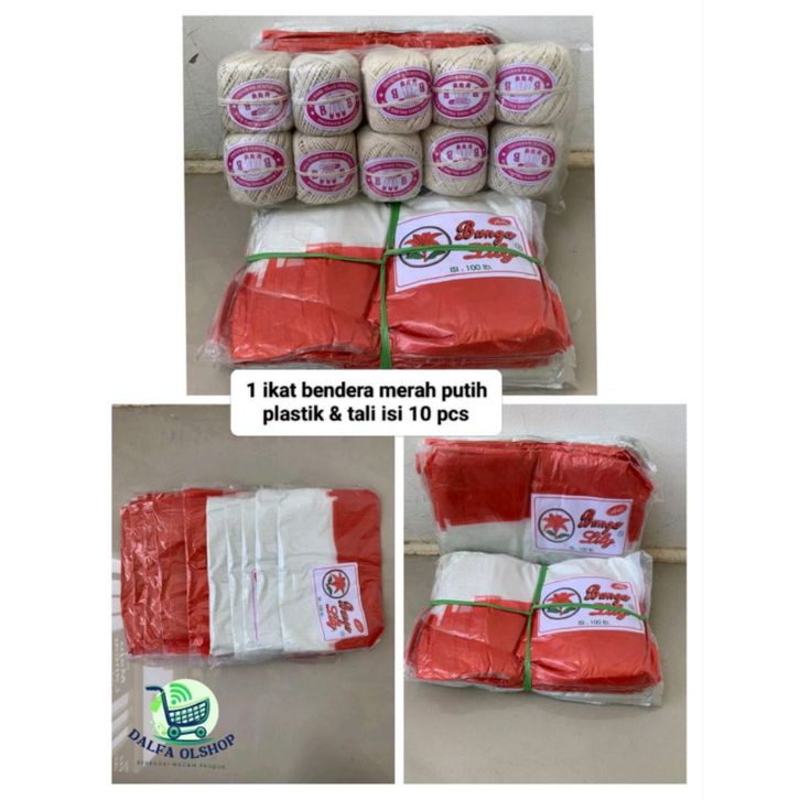 paket murahh bendera merah putih plastik isi 1000 lmbar + tali 10 gulung
