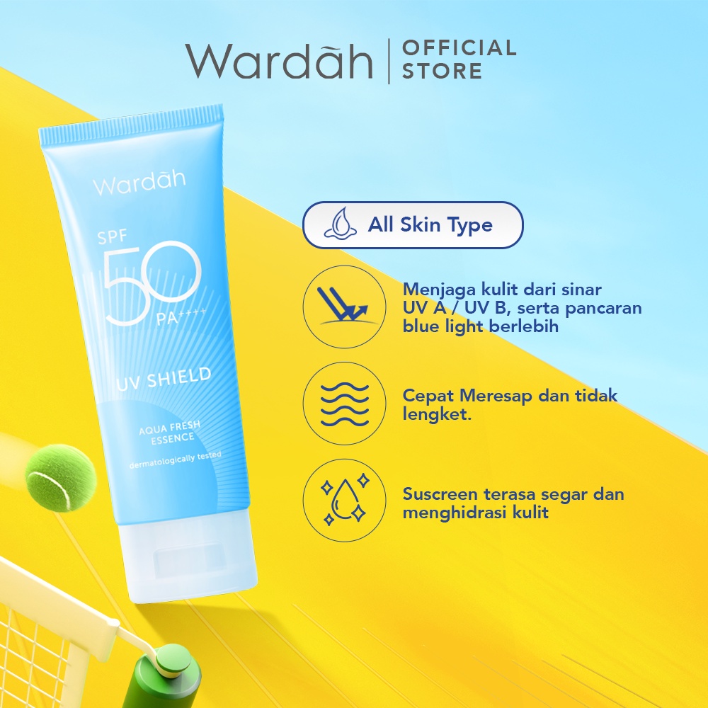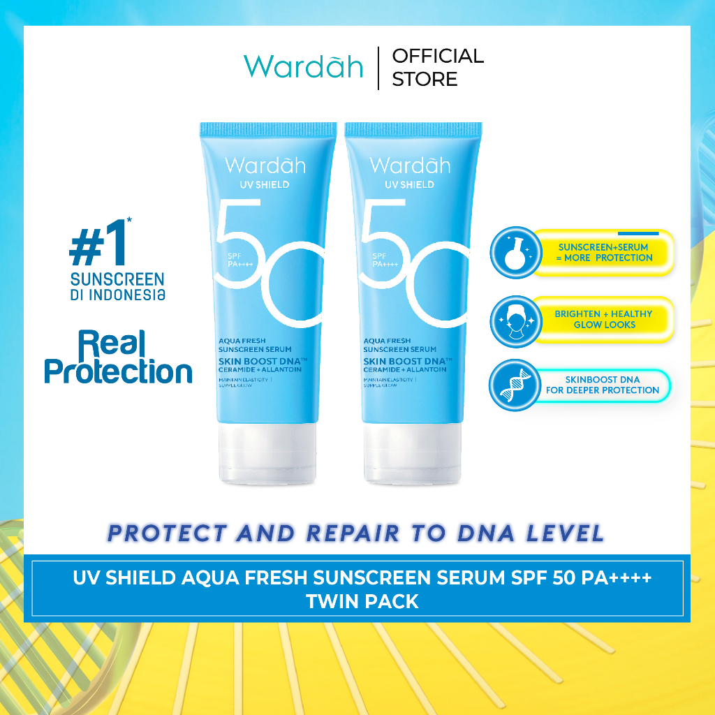 WARDAH UV Shield Aqua Fresh Essence SPF 50 30 ml Twinpack - Sunscreen Wajah 0% Alkohol - Tekstur Ringan - Menghidrasi