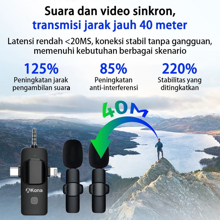 3 IN 1 MIC WIRELESS CLIP ON 2 MICROPHONE WIRELESS CLIP ON NOISE REDUCTION MIKROFON KONTEN KREATOR 3.5MM TYPE-C LIGHTNING