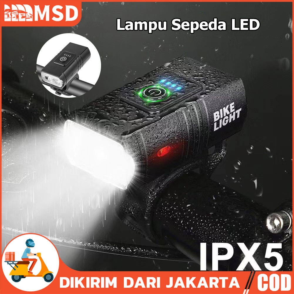 Lampu 2 LED Sepeda Depan Super Terang Senter 1000Lumens Bike Light 1000mAh Waterproof USB Charge