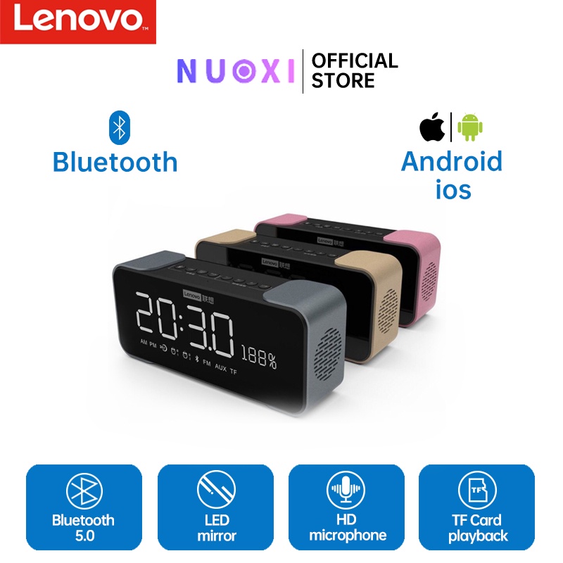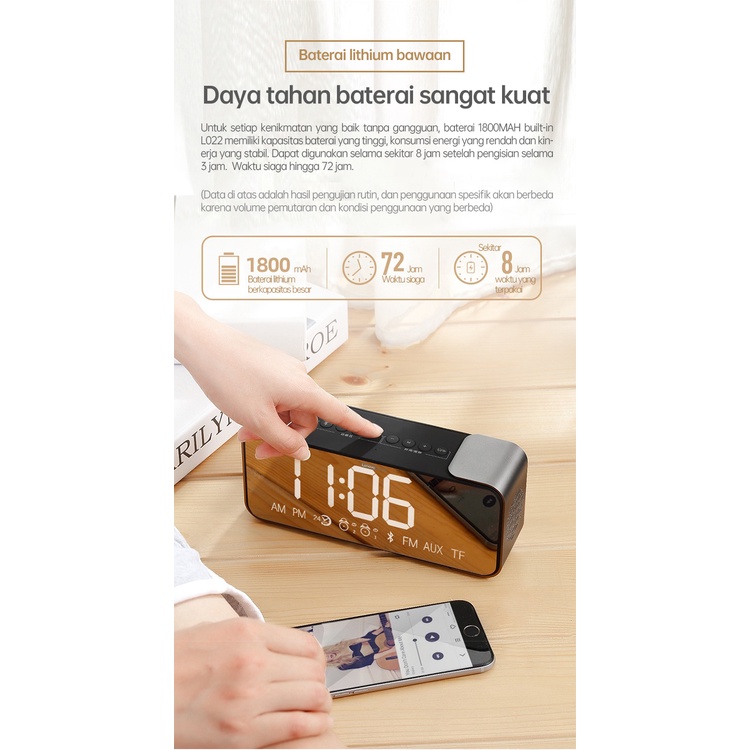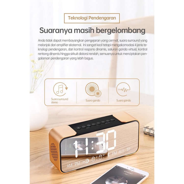 Lenovo L022 Bluetooth speaker portabel / speaker nirkabel bluetooth 5.0 LED Jam Alarm