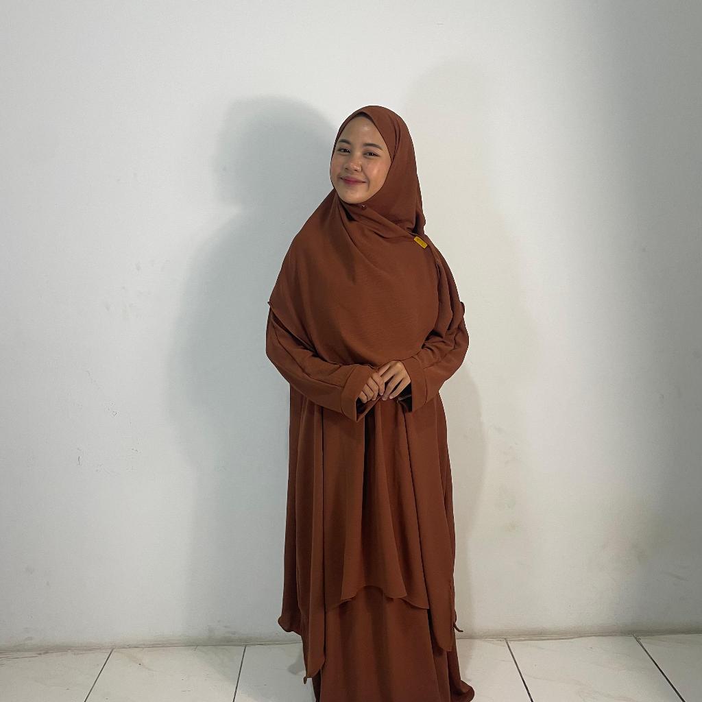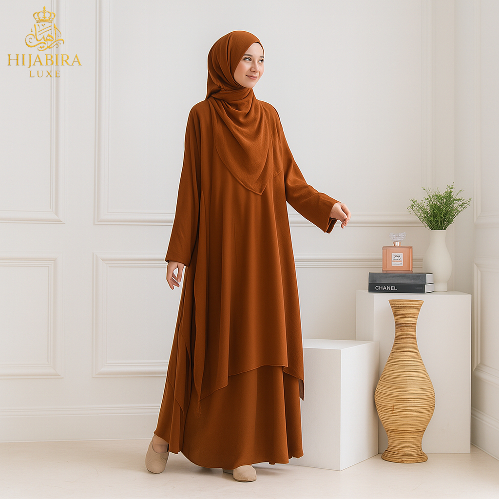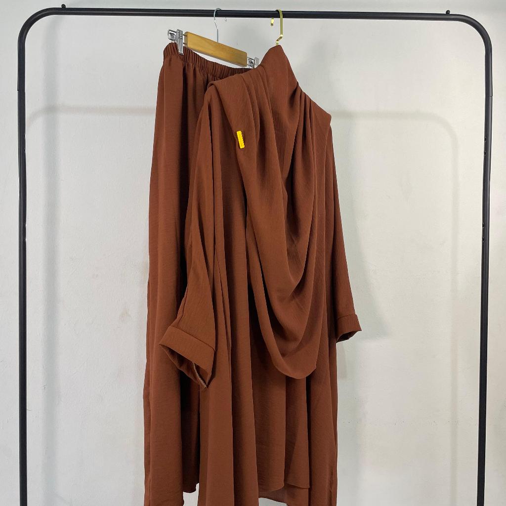 Rok Tunik One Set Pashmina Oval Hijab Wanita Abaya Caramel Melayu All Size