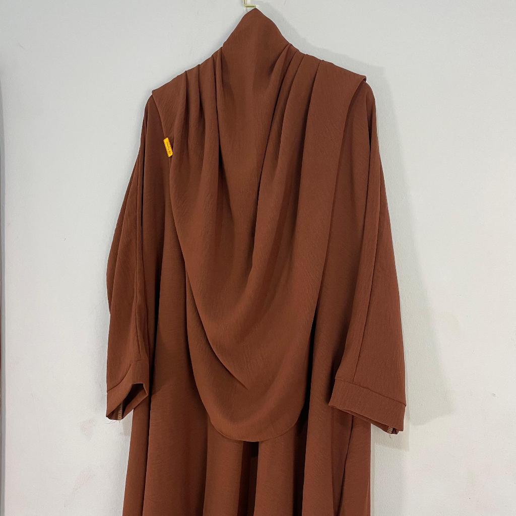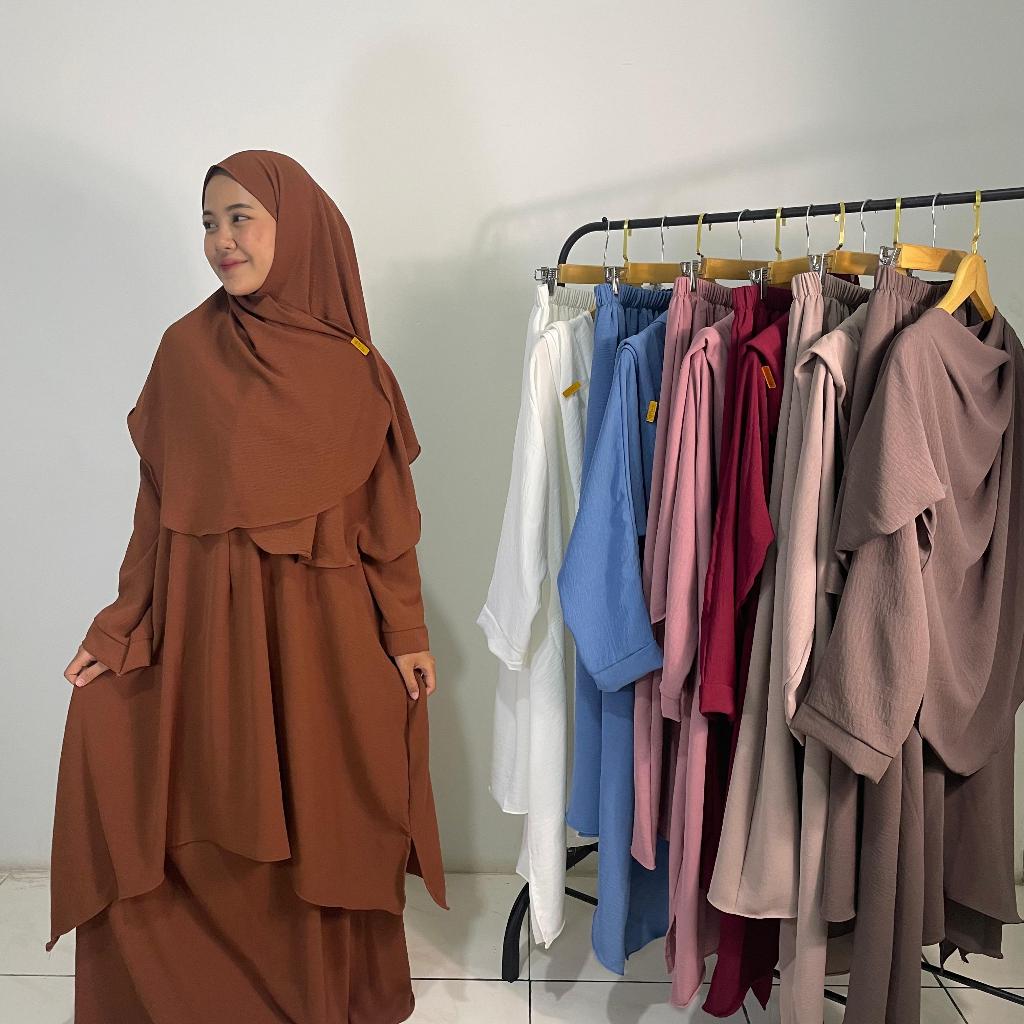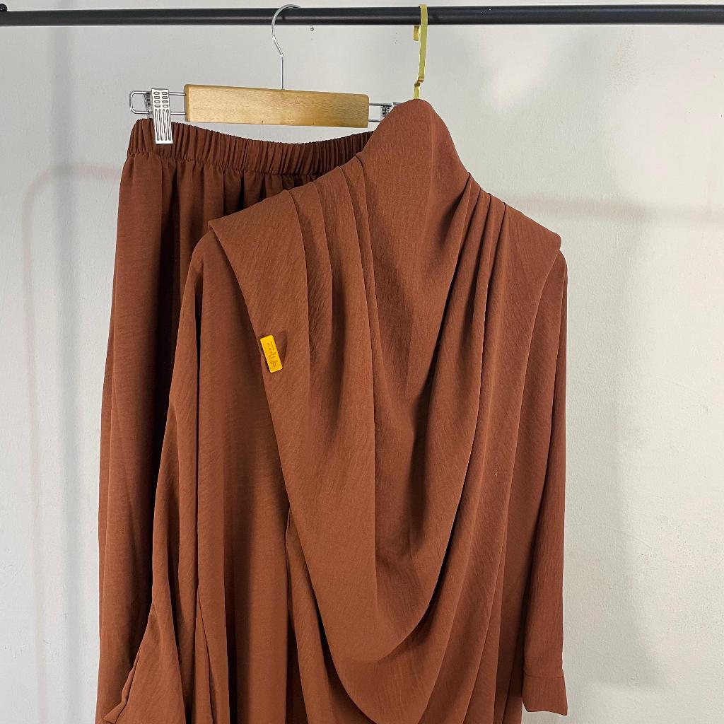 Rok Tunik One Set Pashmina Oval Hijab Wanita Abaya Caramel Melayu All Size
