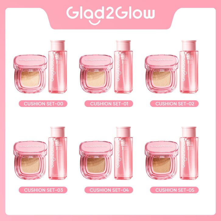 Cushion Glad2Glow Paket 2pcs Set Cushion + Micellar Water 300ml Glad2Glow Perfect Cover Cushion 11g 6 Shades