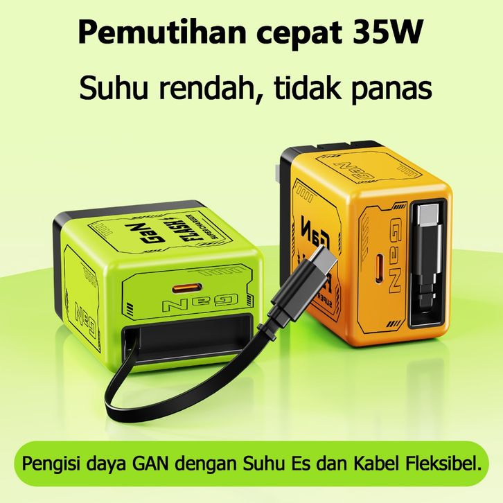 Charger GaN 35W Portabel dengan Kabel Adaptor Super Cepat PD/QC 120W Type-C Multi Protokol Apple/Samsung/FIFO/Xiaomi