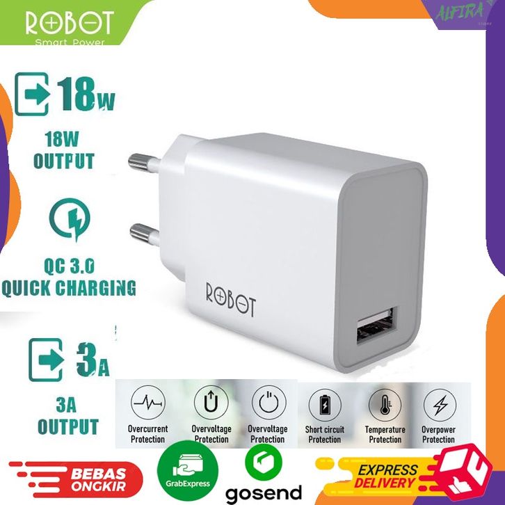 Charger ROBOT RT-F1 18W Batok Charger 3A Single Port Quick Charge 3.0 Qualcomm - Garansi Resmi 1 Tahun