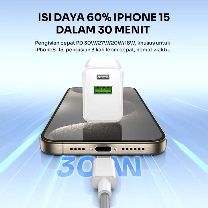 CHARGER ROBOT FAST CHARGING 30 W PD + QC 3.0 GARANSI RESMI 1 TAHUN BATAM