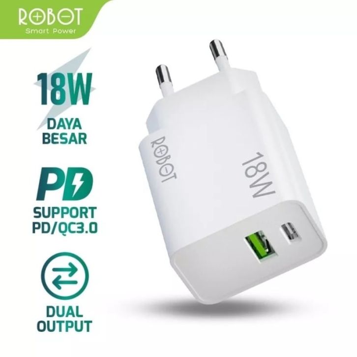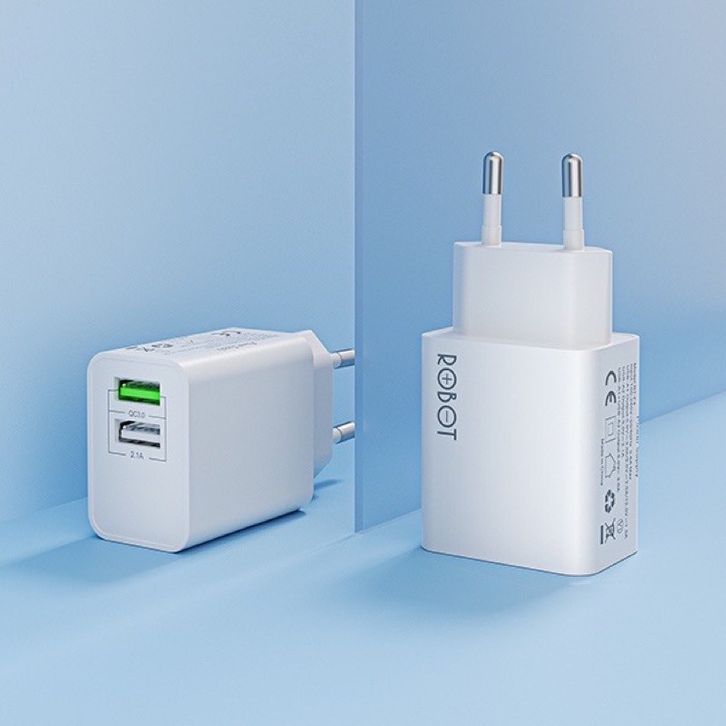Adaptor Charger Robot RT-F4 Batok Charger Dual USB Quick Charger QC3.0 Fast Charging Original