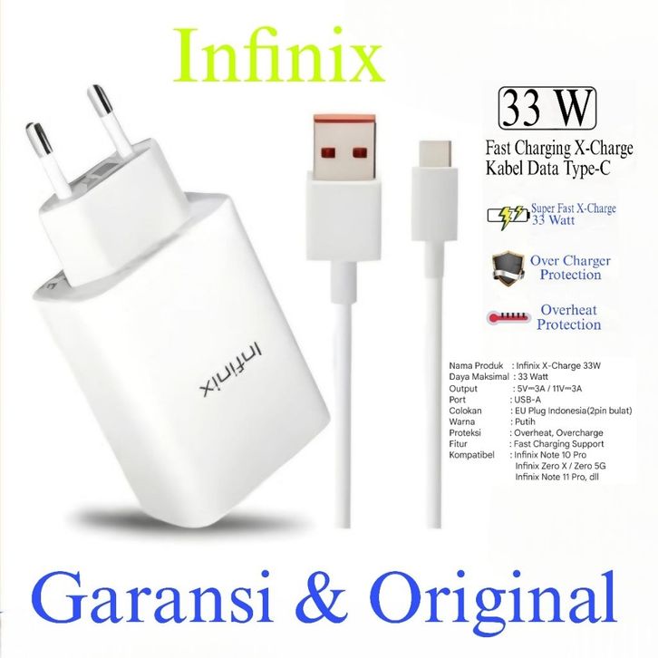 Charger Infinix 33W USB-C Original - Fast Charging Note 11, Note 30, Zero 5G