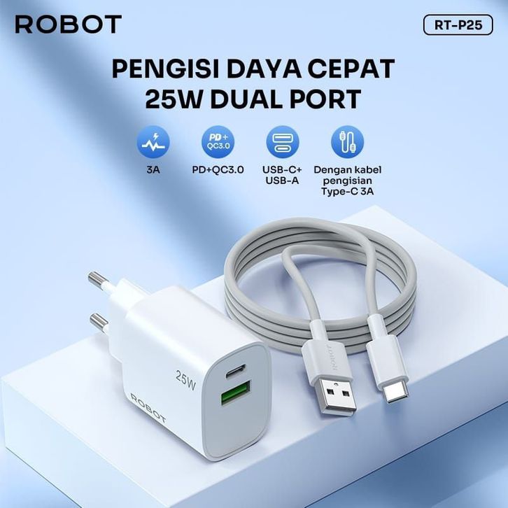 Charger Robot RT-P25 TYPE-C PD 25W 3A ADAPTOR 2 PORT ORIGINAL