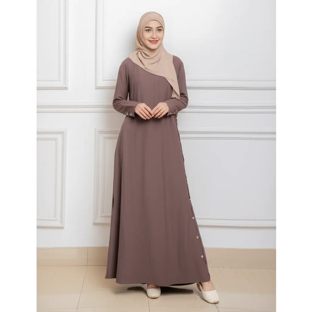 fashiola Abaya Gamis Casual Polos Busui Baju Muslim Wanita Umroh Lebaran Haji Daily T1