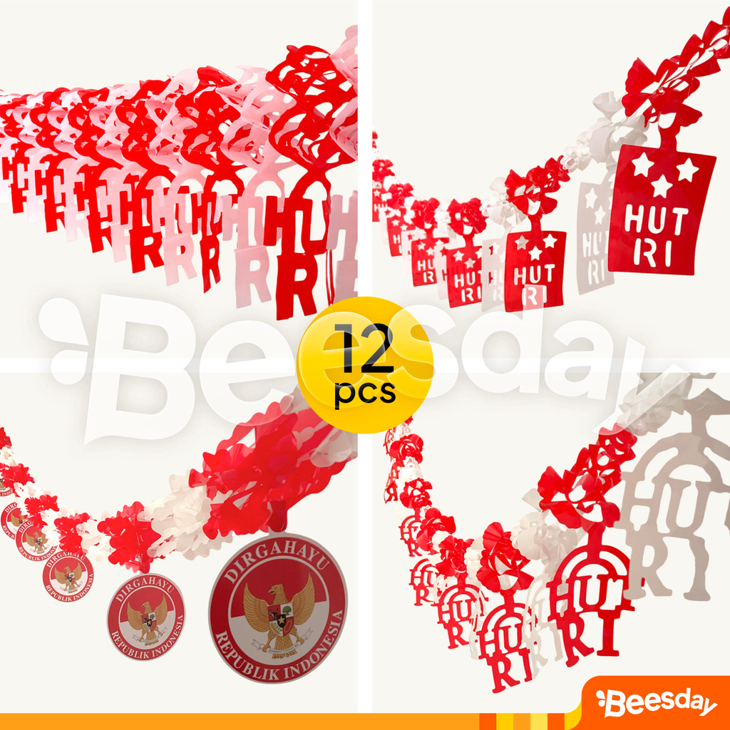 (12PC) Garland Tarik Dekorasi HUT RI | Hiasan Kemerdekaan Merah Putih Indoor