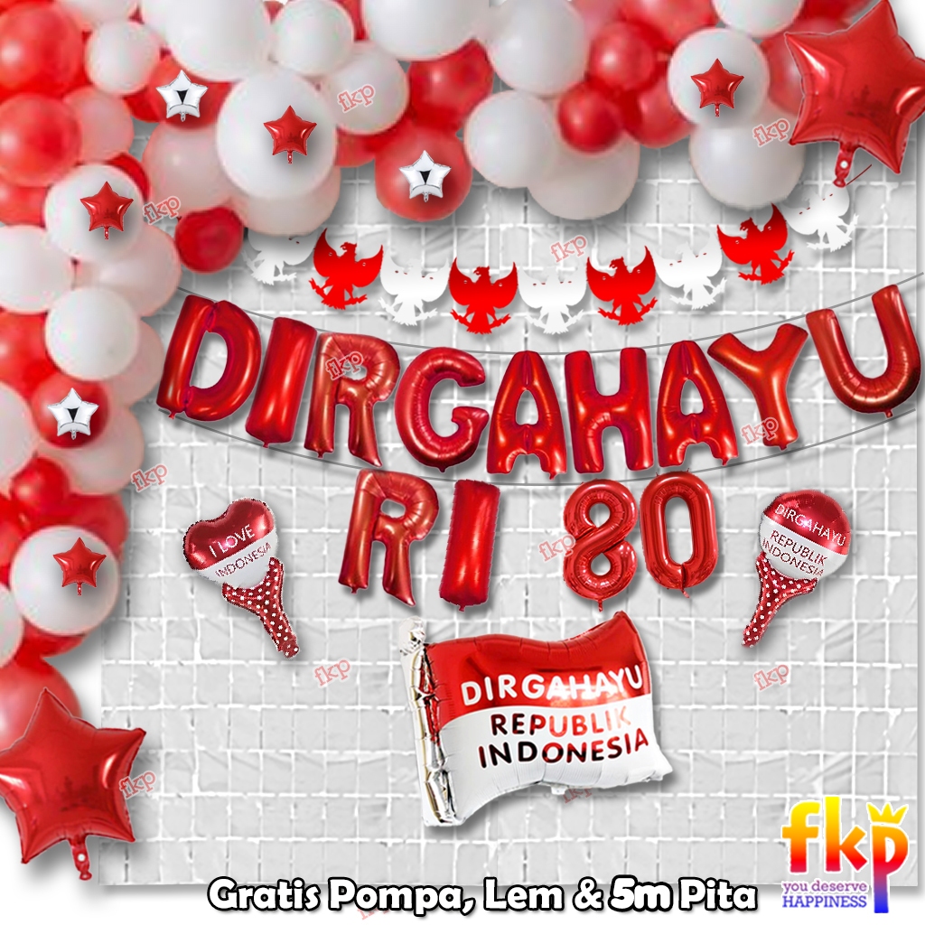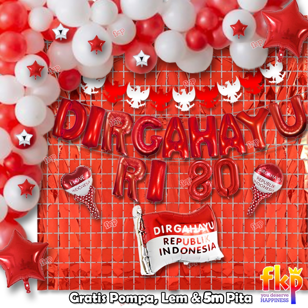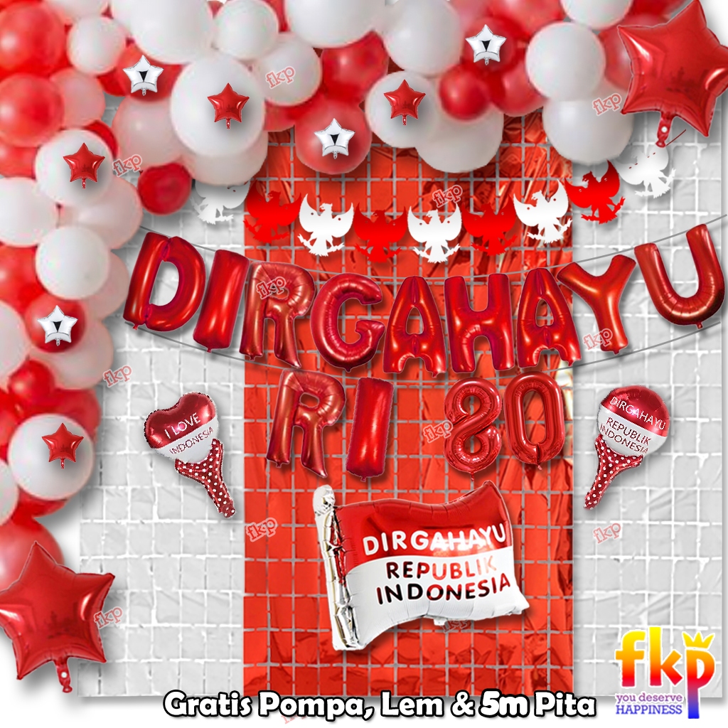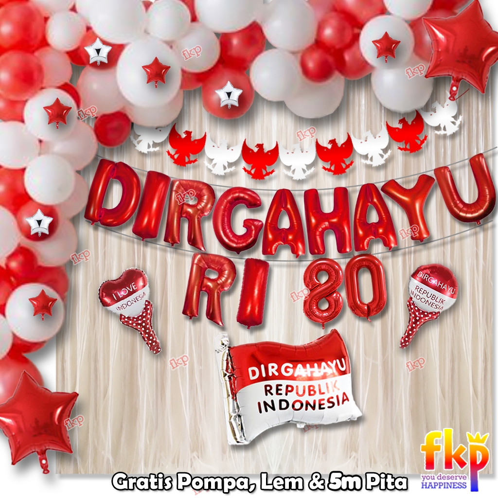 FUN KIDS PARTY Paket Dekorasi B Dirgahayu Garland Balon HUT RI / Paket Menyambut Hari Kemerdekaan Balon Dirgahayu Agustu