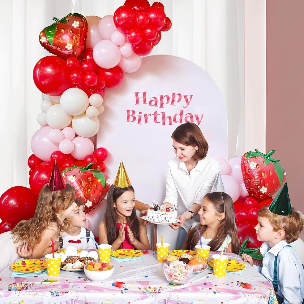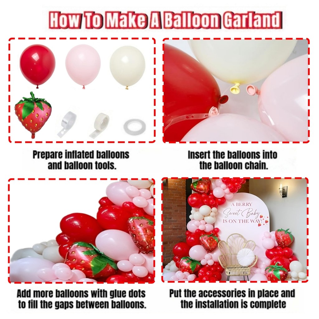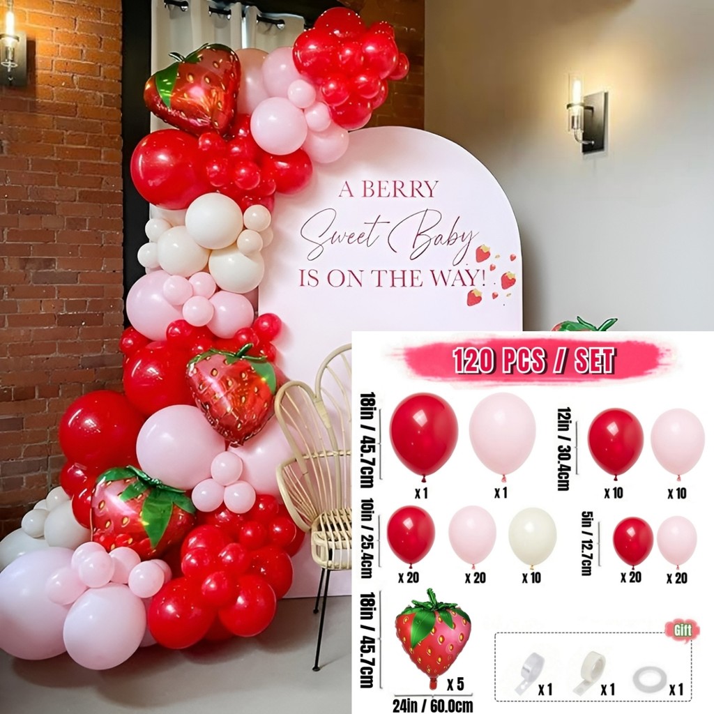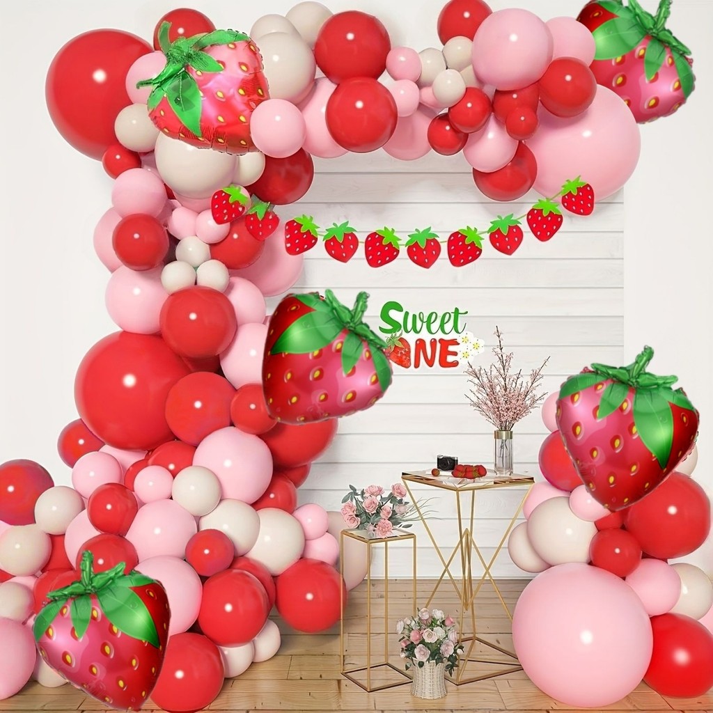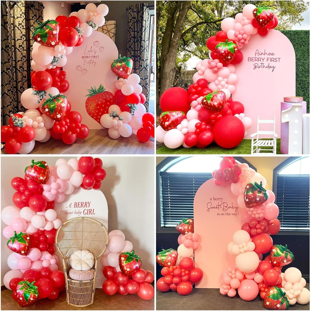 Kit Garland Balon Stroberi Merah Muda dan Merah Muda untuk Ulang Tahun Manis Bayi Pesta Bridal Shower Dekorasi Balloon A