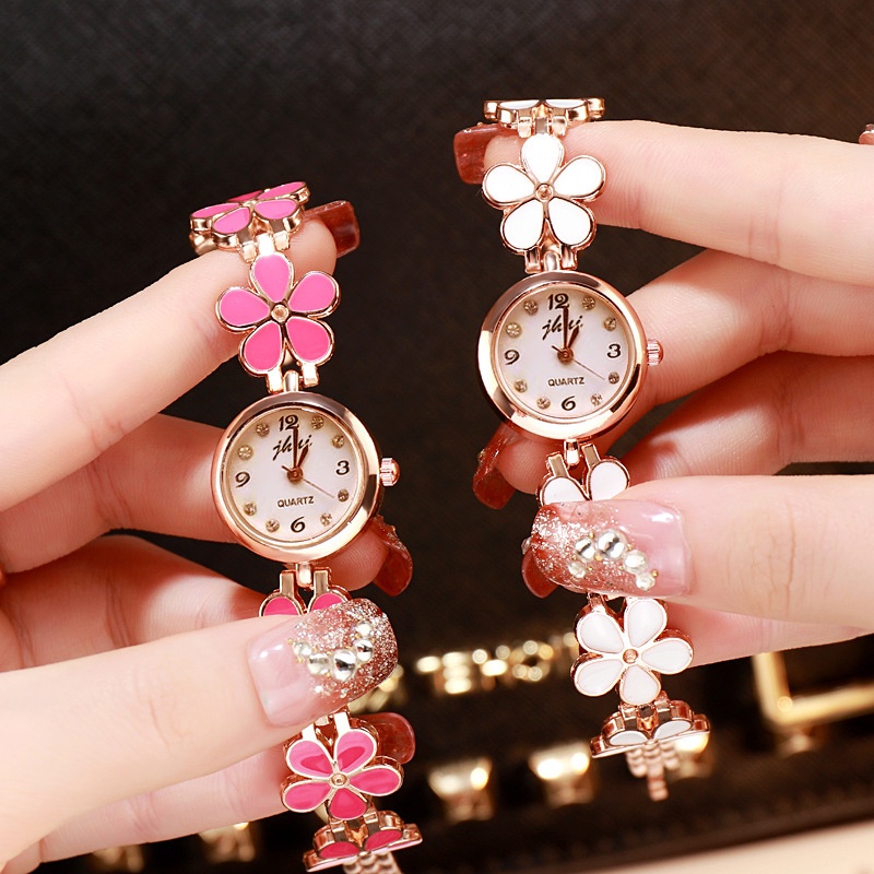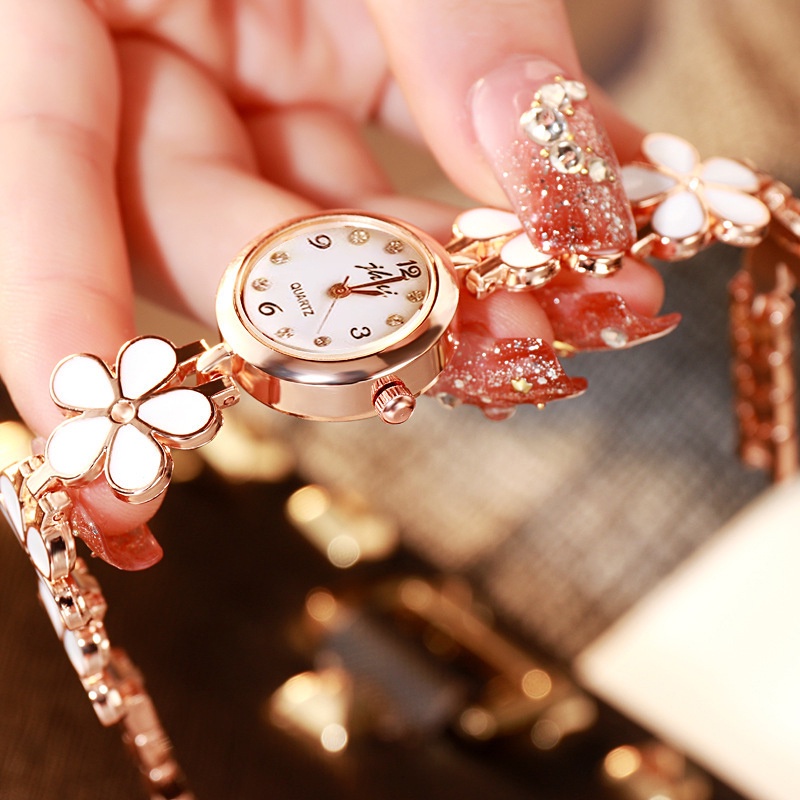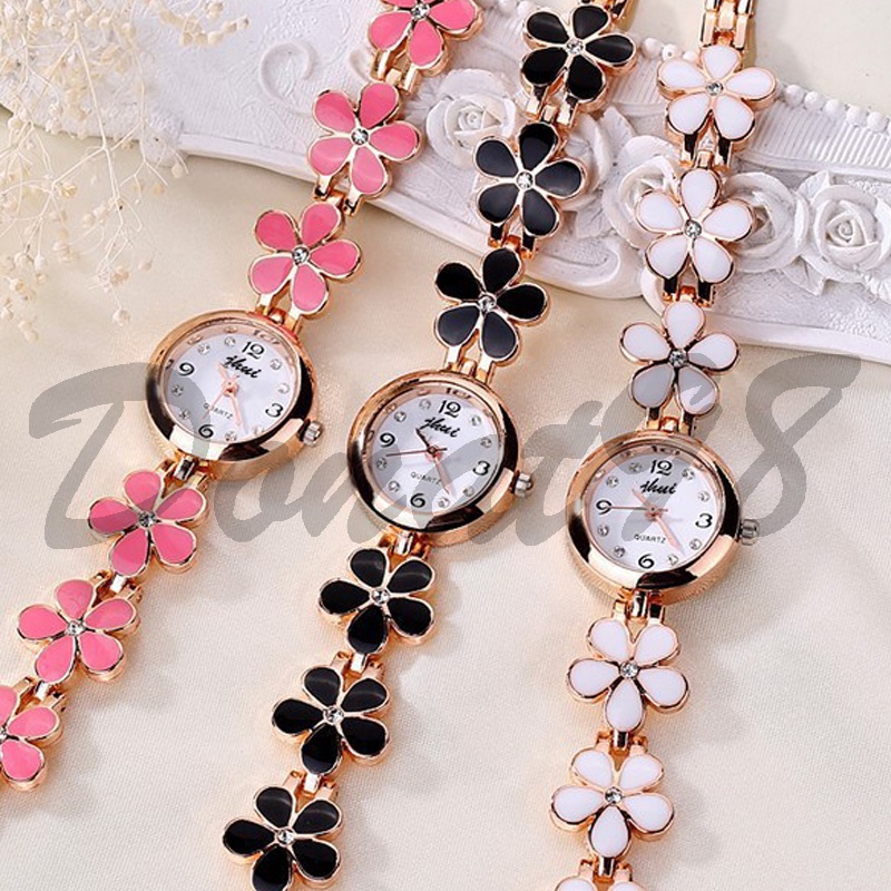 Jam Tangan Wanita Bunga Kecil Analog Model Gelang Gaya Fashion Trendy