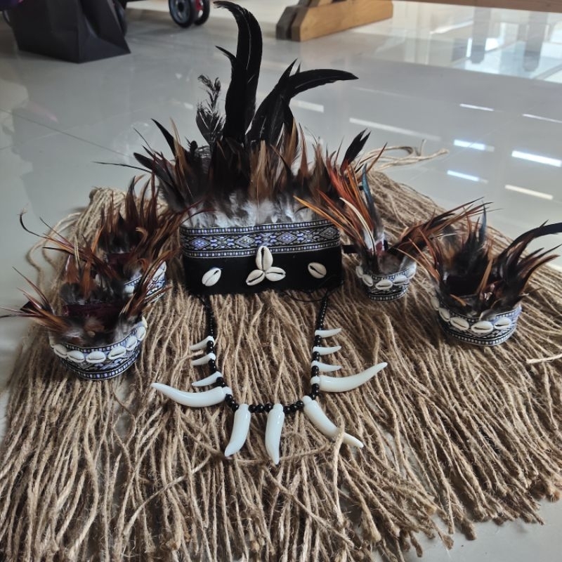Satu Set Kostum Adat pedalaman Papua Tari dan Karnaval Mahkota ikat kepala bulu Set rok ABT