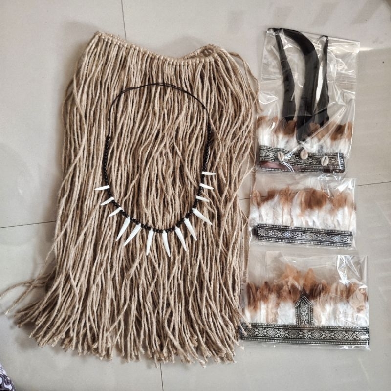 Satu Set Kostum adat pedalaman Papua Dewasa dan anak untuk Tari dan karnaval