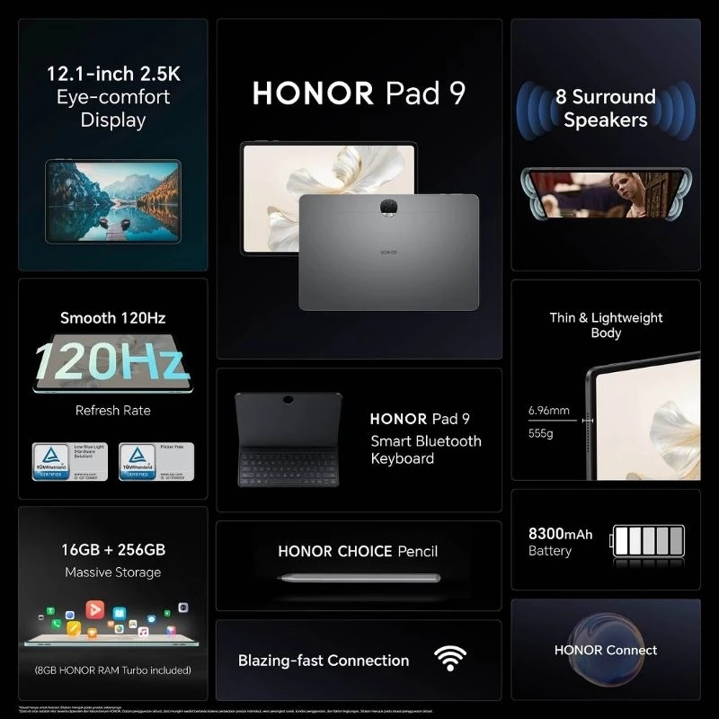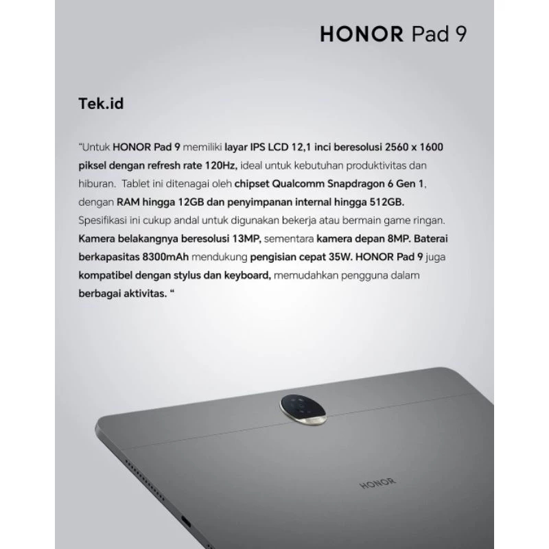 Honor Pad 9 [8GB+256GB] IPS LCD 12.1 inches - Snapdragon 6 Gen 1 - 8300 mAh - Gransi Resmi 1 Tahun