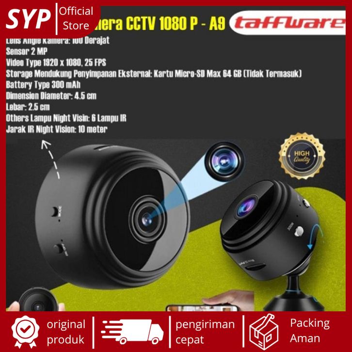 Taffware Camera pengintai CCTV 1080P A9 Mini WiFi Tersembunyi Tanpa Kabel Terhubung Hp Jarak Jauh