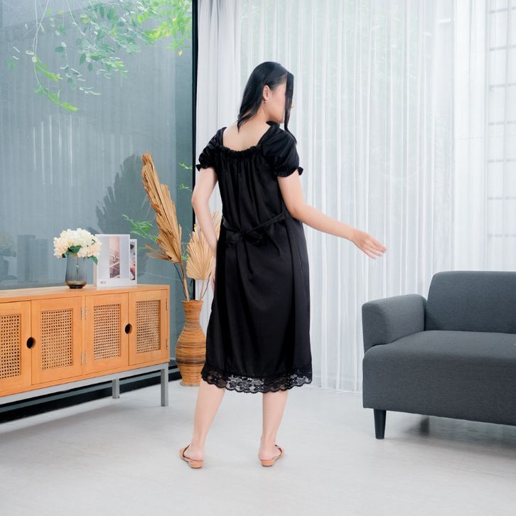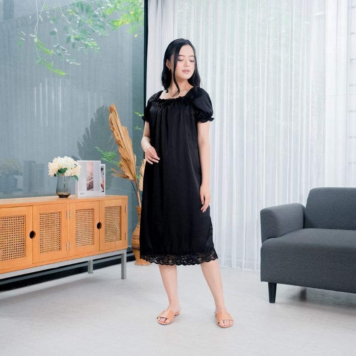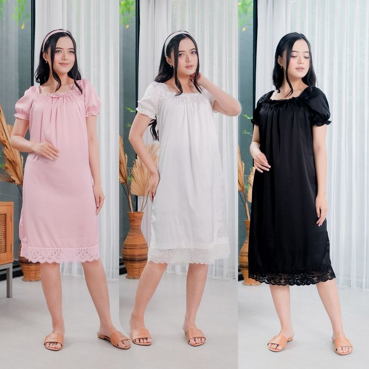 Gaun Piyama Daster Rania Baju Tidur Wanita Mewah Home Dress Sutra Premium Variasi Renda