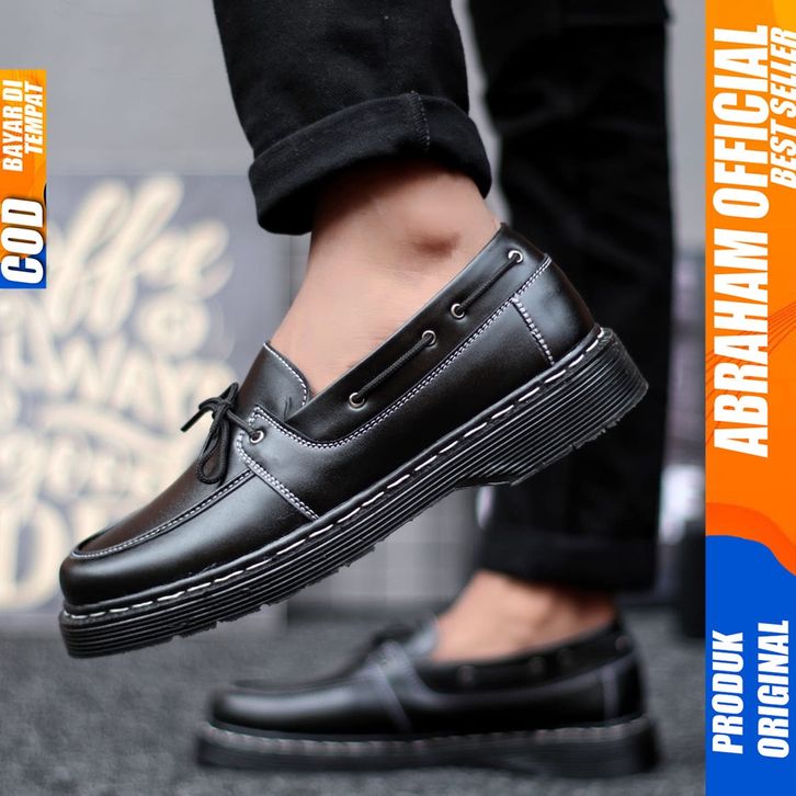 Sepatu Kulit Pria Sepatu Loafers Docmart Formal Pantofel Kerja Pria Hitam Abraham Arbent