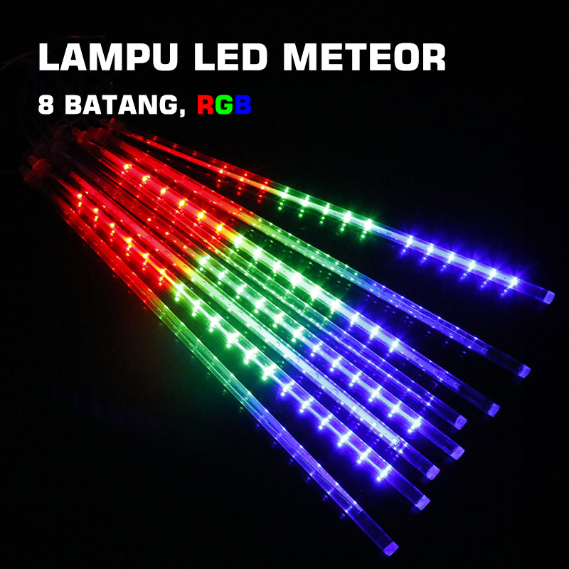 LAMPU METEOR LED HUJAN 50CM Merah Putih RGB 1SET 10BATANG JATUH RAIN SNOW TAMAN HIAS