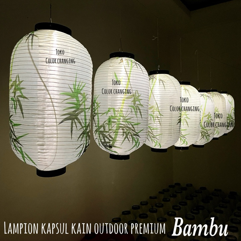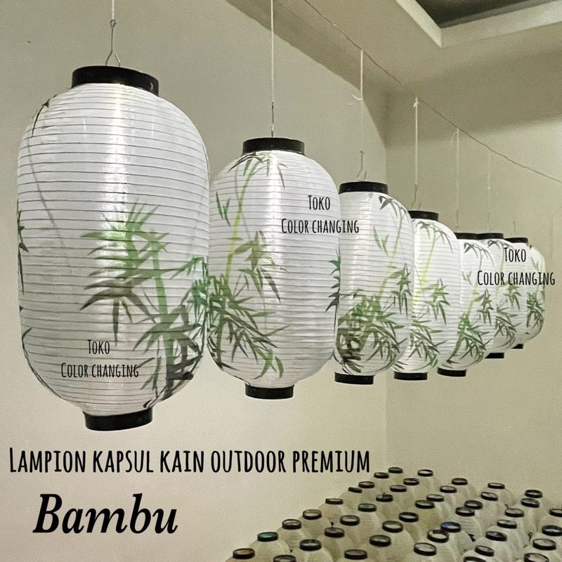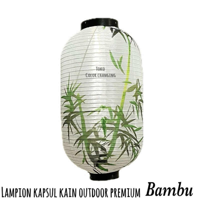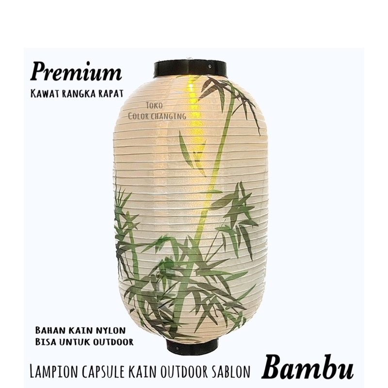Lampion Jepang lonjong KAIN sablon bambu capsule OUTDOOR 25 x 45 cm jepang imlek