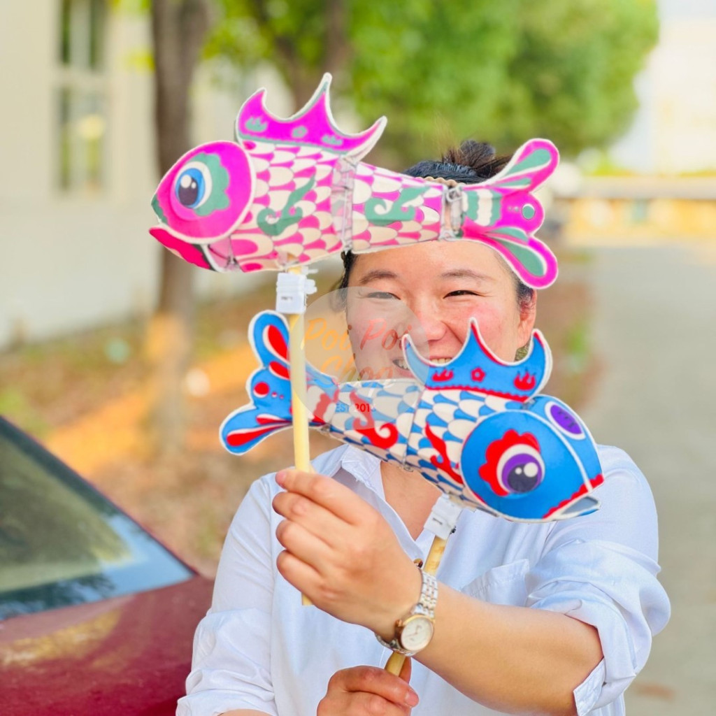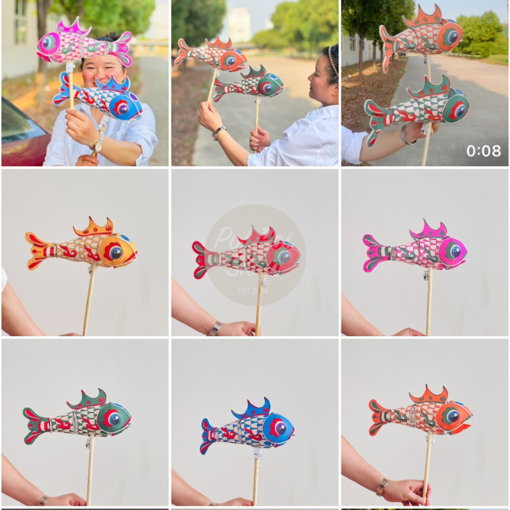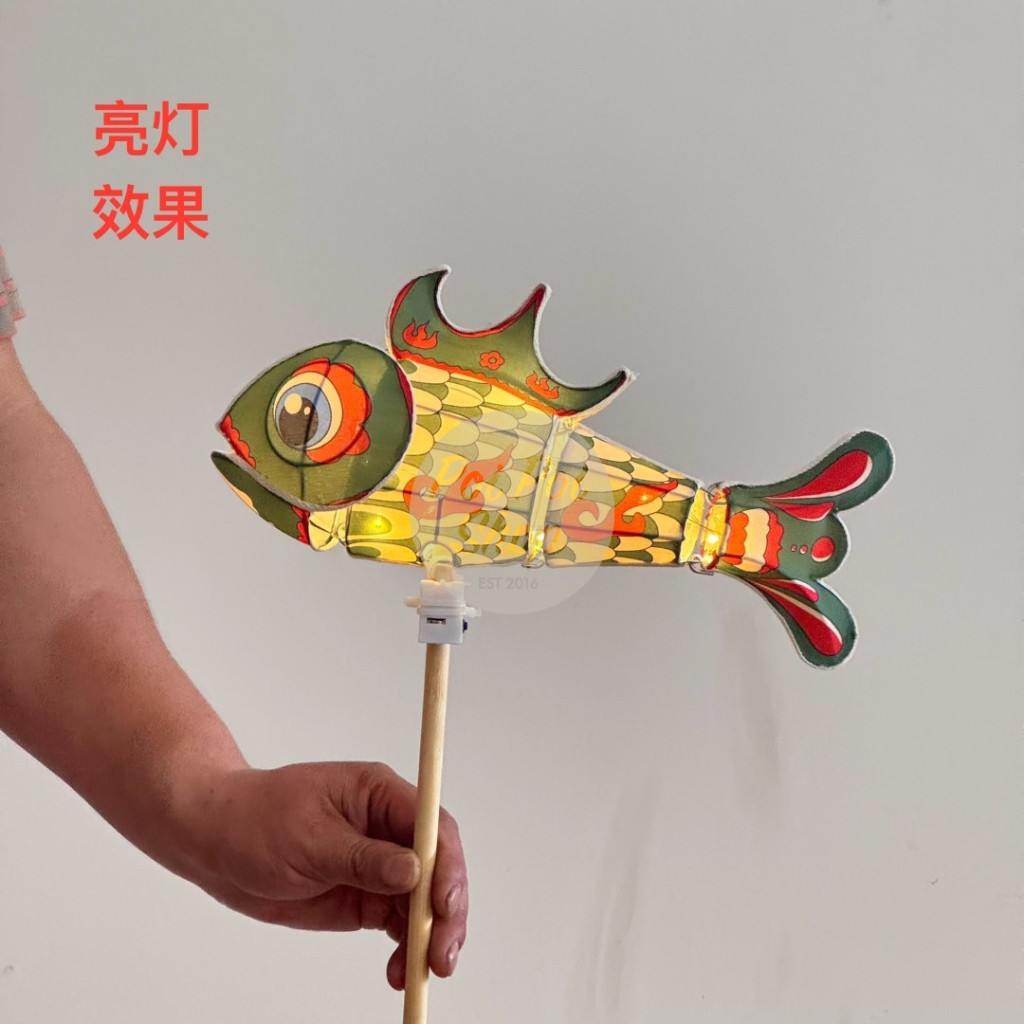 Lampion Tangan Ikan Yu Imlek LED Mid Autumn Festival Handmade Kain Premium Cina Oriental Dekorasi Hias Imlek Pentas Seni