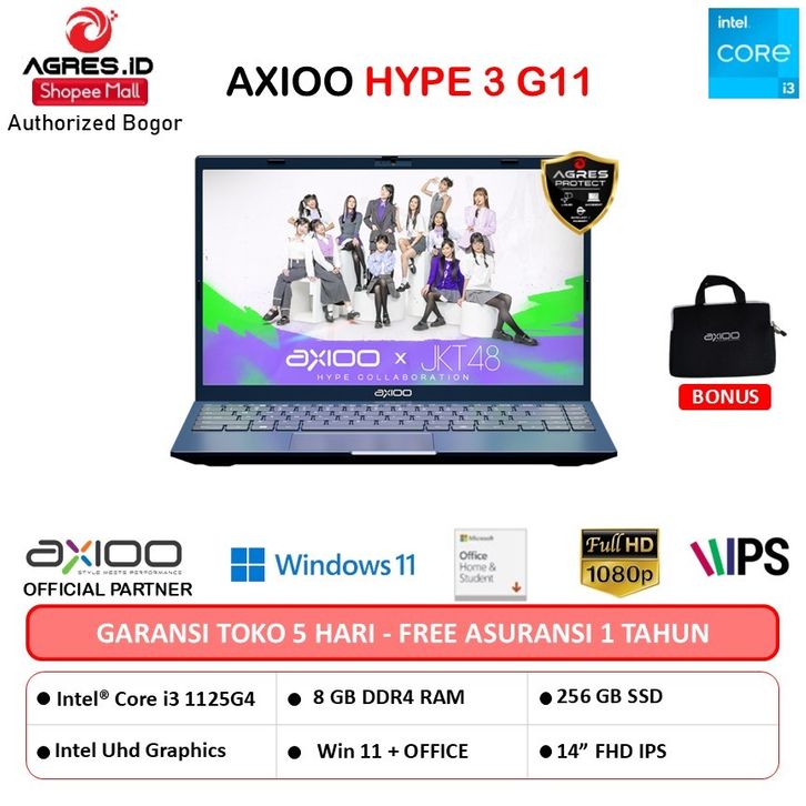 AXIOO HYPE 3 G11 I3 1125G4 8GB 256GB W11+OFFICE PERMANEN 14.0FHD IPS HDMI BLU